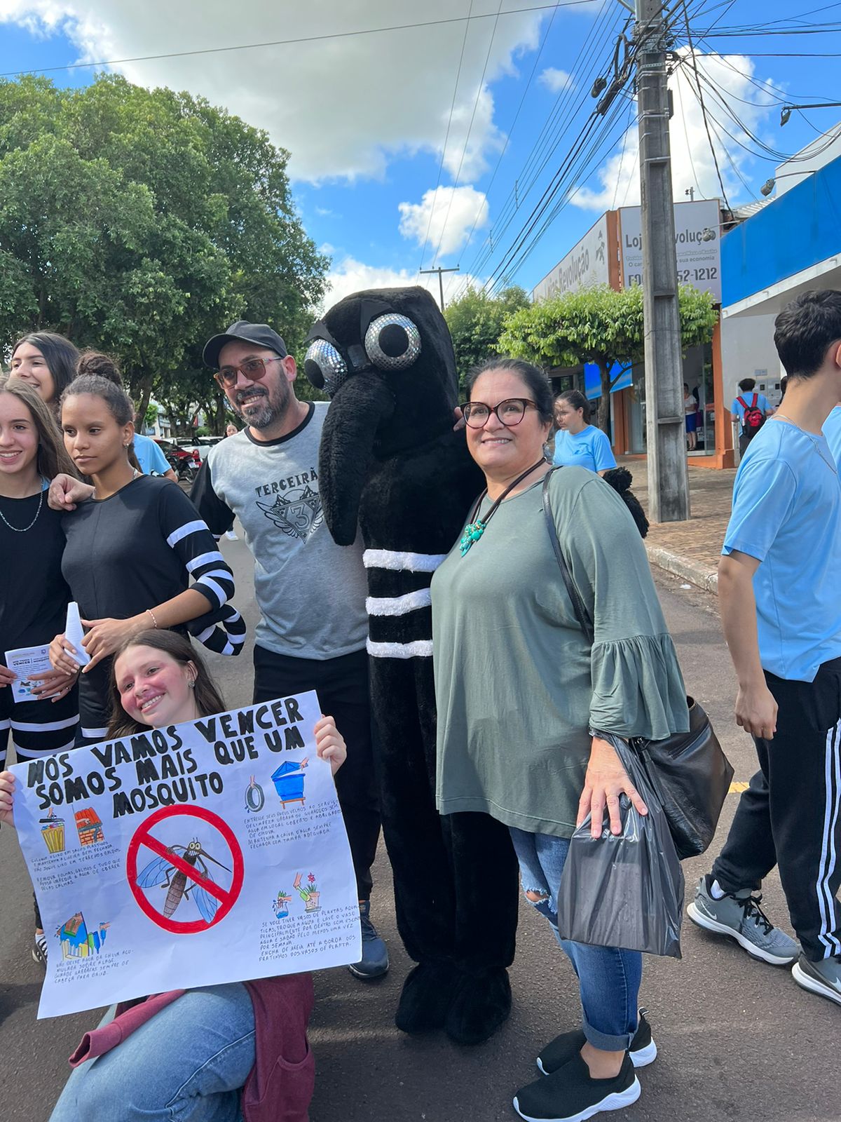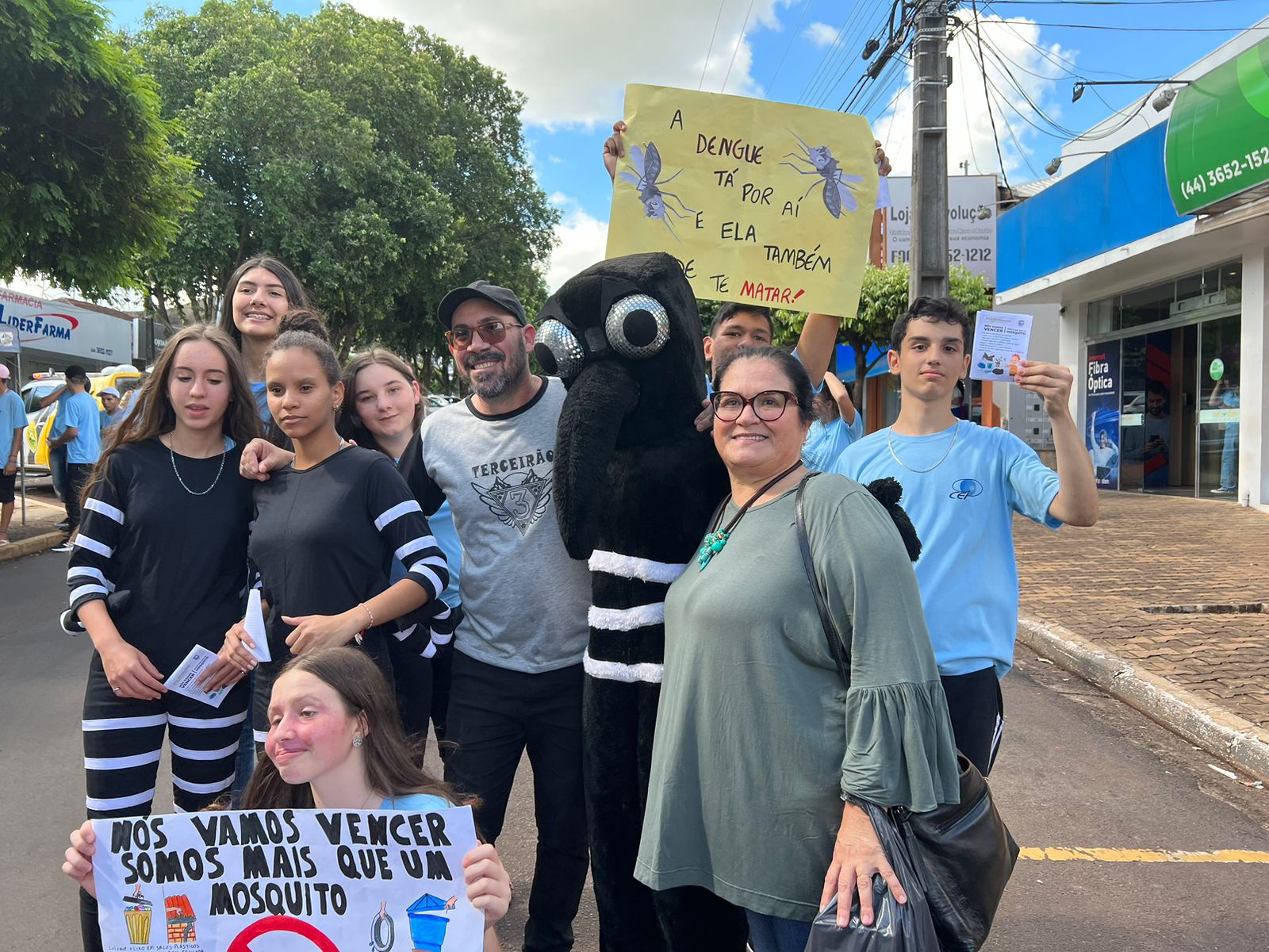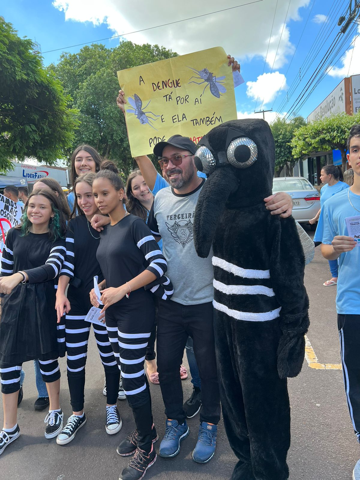 A dengue é uma doença transmitida pelo mosquito Aedes aegypti, que afeta milhões de pessoas em todo o mundo. No Brasil, essa doença se tornou um problema de saúde pública, exigindo esforços conjuntos para combatê-la. Neste contexto, uma iniciativa inovadora reuniu professores, a Associação Comercial local e a Polícia Militar em uma campanha nas ruas, envolvendo crianças vestidas de mosquito, cartazes e faixas, com o objetivo de conscientizar a população sobre a importância da prevenção da dengue.