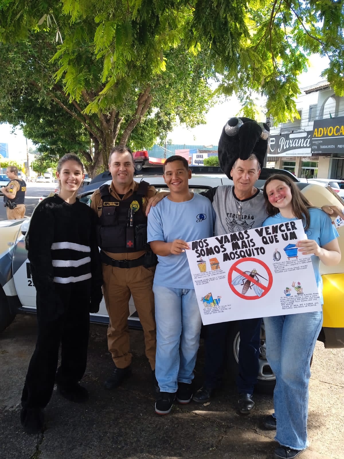 A Polícia Militar também desempenhou um papel fundamental na campanha. Os policiais participaram ativamente, acompanhando as crianças nas ruas, garantindo a segurança do grupo. Essa colaboração ajudou a reforçar a importância da união de todos os setores da sociedade no combate à dengue.