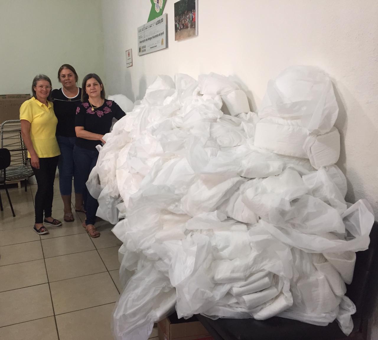 No decorrer do dia, nossas entidades colaboradoras trabalharam em conjunto para arrecadar doações e fabricar fraldas, a fim de suprir as necessidades do Lar de Idosos. A Associação das Mulheres Voluntárias desempenhou um papel fundamental na fabricação das fraldas, mostrando seu comprometimento em cuidar e apoiar os idosos da nossa comunidade.