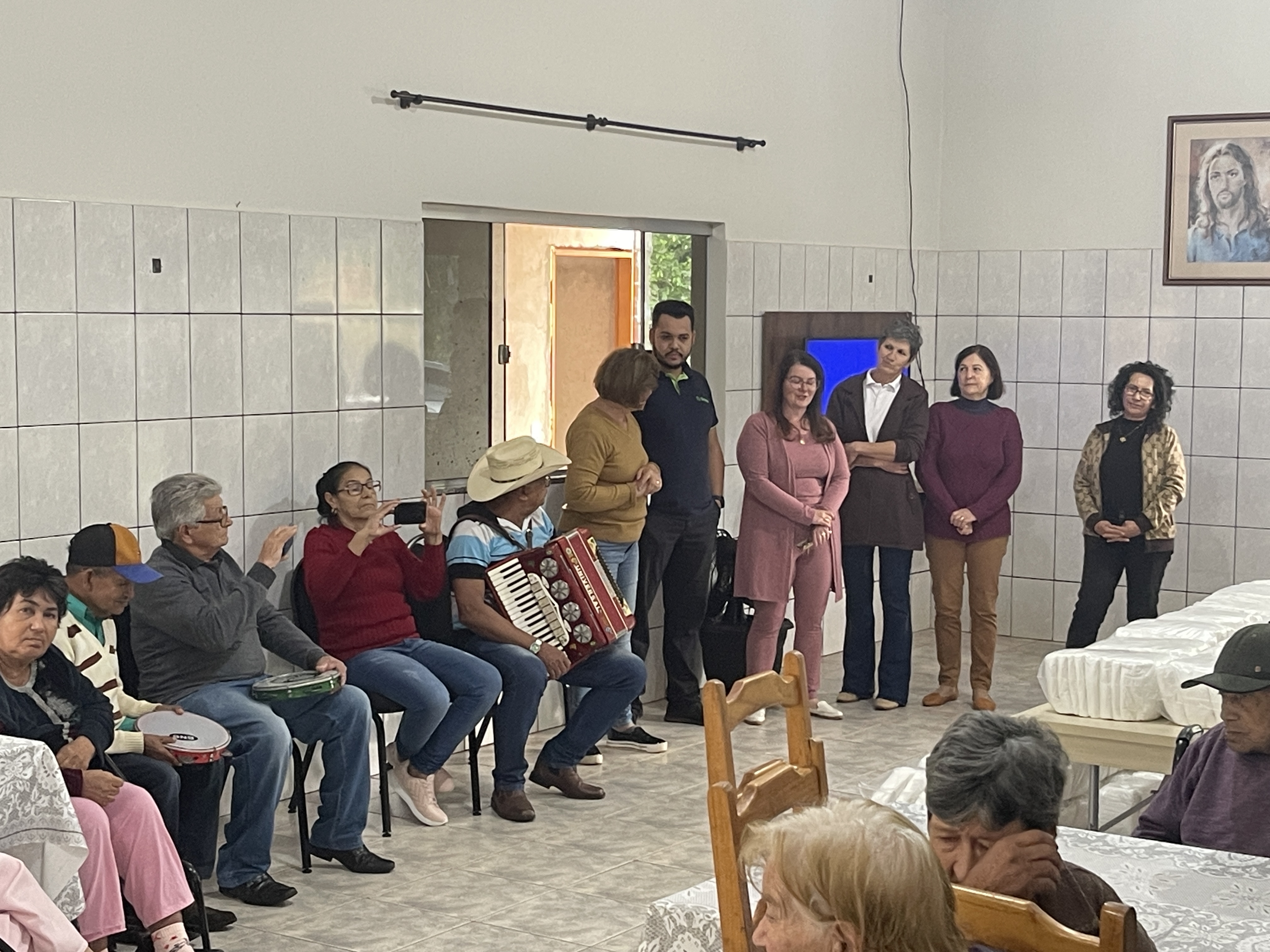 Além disso, o evento foi permeado por momentos de alegria e afeto. Contamos com um talentoso sanfoneiro para proporcionar um café animado e acolhedor aos idosos, tornando o dia ainda mais especial e memorável.